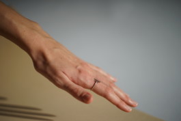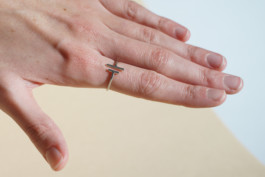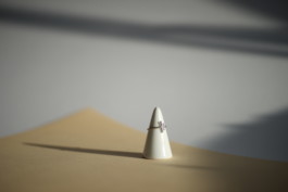Transition is a ring that plays with separation and connection. A gap in the ring is highlighted by two bars marking the ring segment's ends. While blending smoothly into each other, the length of the bars is chosen to be in a golden ratio to let them correlate. The ring is made using lost-wax casting.