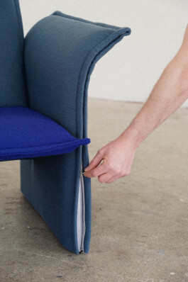 Holiday Chair is the result of in-depth research into ergonomics and design history, based on an analysis of various contemporary and historical references. Without any mechanisms, the chair allows for different sitting positions simply through its formal design. The design was conceived during a holiday, which shaped both the character of the chair and its name. Durability, quality, cost-effectiveness, and repairability guided the development process. All textiles are fully removable; the construction does not use staples, allowing for easy repairs. Replaceable upholstery components ensure long-term use and simple maintenance. The chair was developed for an exhibition in cooperation with Kvadrat and Munich Design Days 2026.
