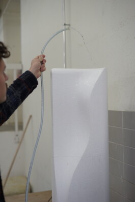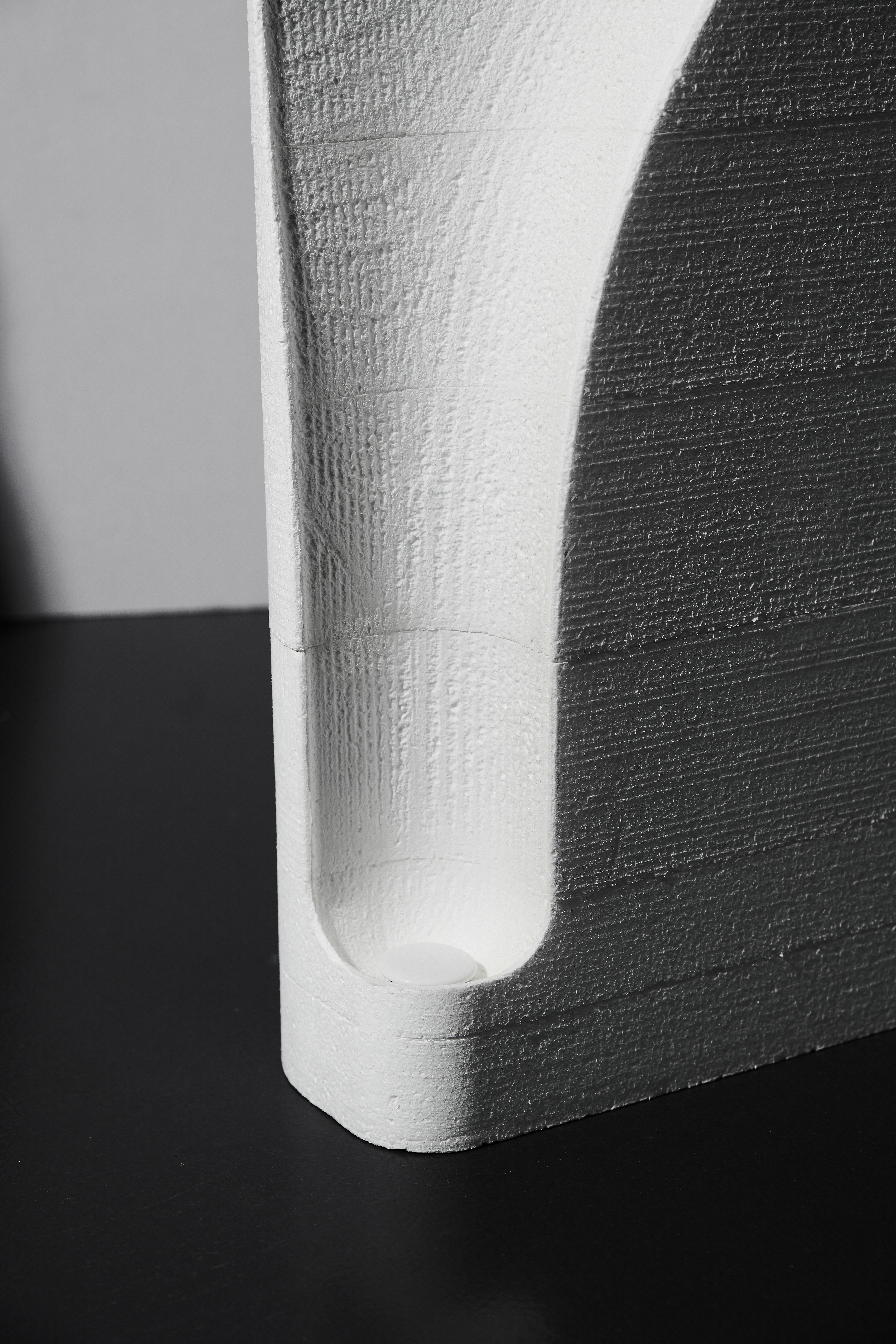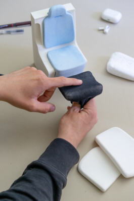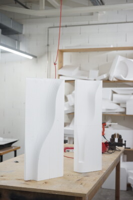 The entire body of the fountain is framed by a thin rim that keeps the water in place and showcases Laufen’s SaphirKeramik signature material. The design’s elegance and sophisticated sculptural approach underline the company’s premium aspirations. Prototyping was carried out by CNC milling styrofoam to test the flow behaviors.