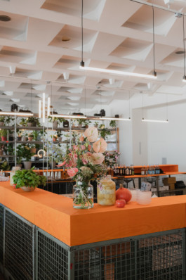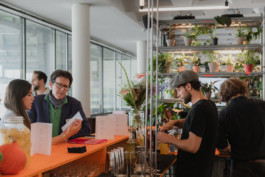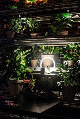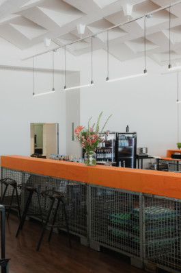 As the event only took place on one day, the interior was built from temporary structures that could subsequently be used for other purposes. Key elements that zoned the space were three room dividers and a bar which all contrasted industrial with organic materials.