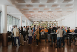 The interior contrasted the site's past with new, progressive design to underline Berlin's creative pioneering role. Guests were to feel comfortable during the event and invited to engage in dialogue.